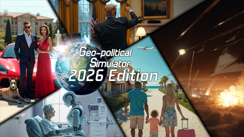 Due to the late STEAM release—very close to the start of 2026—of our previous Geo-Political Simulator 2025 Edition, we have added the geopolitical data for the year 2026 to the game (including updated governments, election results, GDP, population, etc.). You can now start new games beginning in early 2026 or early 2025.